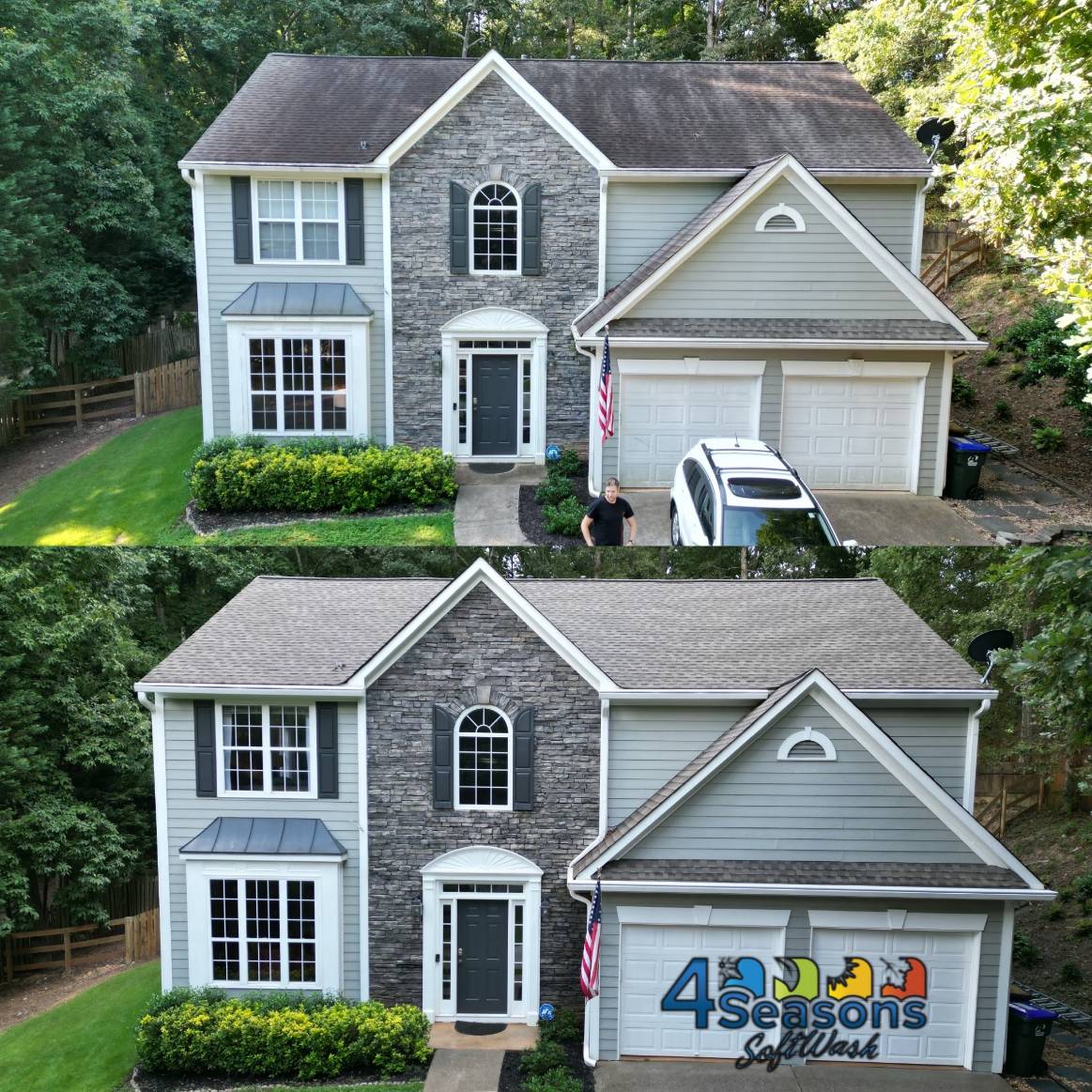 At 4 Seasons SoftWash, we are proud to offer softwashing, the superior alternative to pressure washing. This state-of-the-art method uses eco-friendly cleaning products to kill organic contaminants, such as algae, mold, and mildew, leaving your exterior surfaces spotless. It much less water than pressure washing and yields longer-lasting results. Take a look at our photo gallery to see the amazing results softwashing can get for your residential or commercial property in Johns Creek, Georgia, and then give us a call to schedule your appointment!